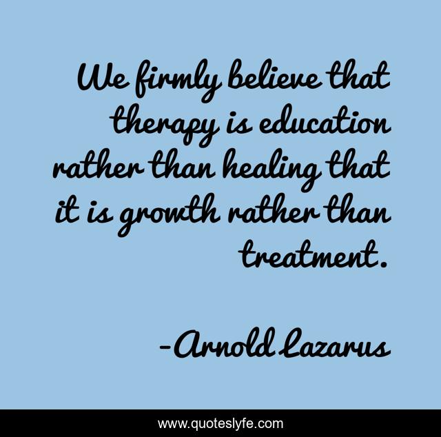 This page presents the quote "We firmly believe that therapy is education rather than healing that it is growth rather than treatment.". Author of this quote is Arnold Lazarus. This quote is about medicine, sickness,.