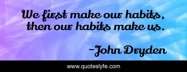 This page presents the quote "We first make our habits, then our habits make us.". Author of this quote is John Dryden. This quote is about habit, self-improvement, change, adaptation,.
