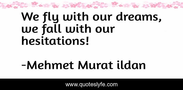 This page presents the quote "We fly with our dreams, we fall with our hesitations!". Author of this quote is Mehmet Murat ildan. This quote is about fly, hesitate, mehmet-murat-ildan, rise, hesitations, fall, dream, dreams,.