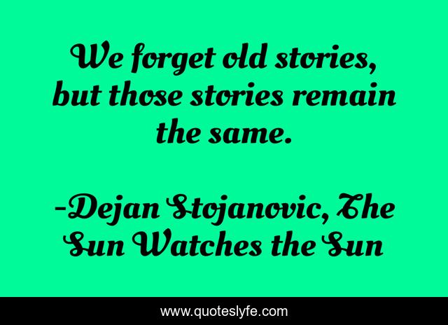 "Dejan Stojanovic, The Sun Watches the Sun Quotes." Quoteslyfe.com, 2025. Mon. 08 Dec. 2025. <https://www.quoteslyfe.com/quote/We-forget-old-stories-but-those-stories-112401>.