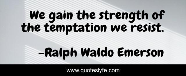 This page presents the quote "We gain the strength of the temptation we resist.". Author of this quote is Ralph Waldo Emerson. This quote is about wisdom, gain, temptation,.