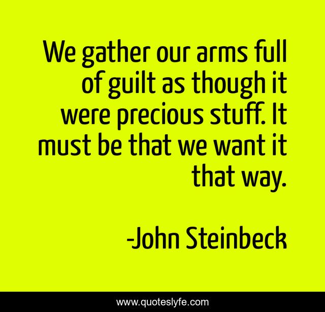 This page presents the quote "We gather our arms full of guilt as though it were precious stuff. It must be that we want it that way.". Author of this quote is John Steinbeck. .