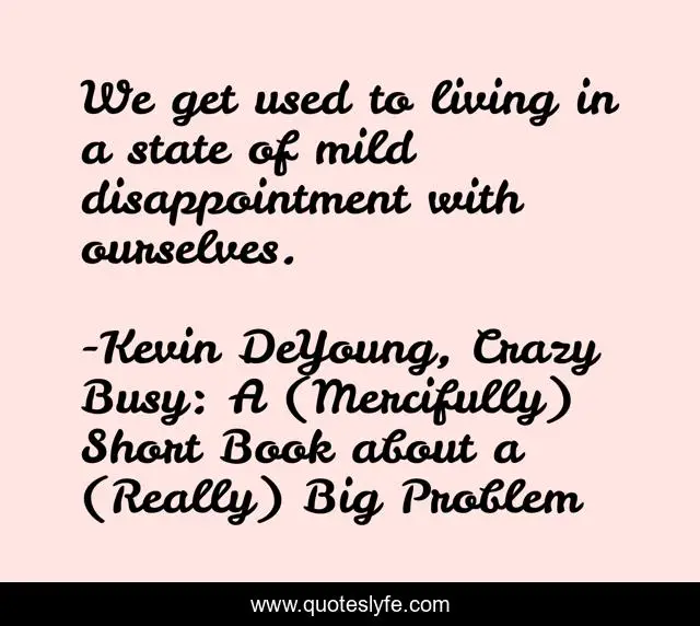 This page presents the quote "We get used to living in a state of mild disappointment with ourselves.". Author of this quote is Kevin DeYoung, Crazy Busy: A (Mercifully) Short Book about a (Really) Big Problem. This quote is about condemnation, guilt,.