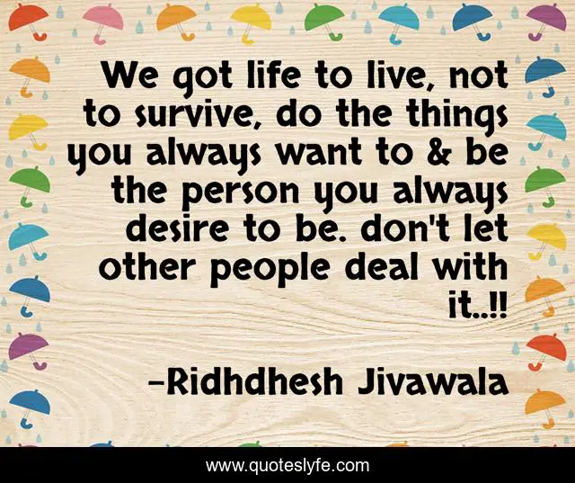 "Ridhdhesh Jivawala Quotes." Quoteslyfe.com, 2025. Fri. 05 Dec. 2025. <https://www.quoteslyfe.com/quote/We-got-life-to-live-not-to-115898>.