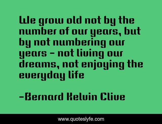 "Bernard Kelvin Clive Quotes." Quoteslyfe.com, 2025. Fri. 05 Dec. 2025. <https://www.quoteslyfe.com/quote/We-grow-old-not-by-the-number-99719>.