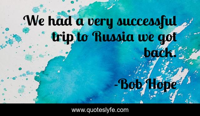 This page presents the quote "We had a very successful trip to Russia we got back.". Author of this quote is Bob Hope. This quote is about travel, cities,.