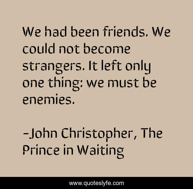 This page presents the quote "We had been friends. We could not become strangers. It left only one thing: we must be enemies.". Author of this quote is John Christopher, The Prince in Waiting. .