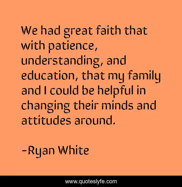 This page presents the quote "We had great faith that with patience, understanding, and education, that my family and I could be helpful in changing their minds and attitudes around.". Author of this quote is Ryan White. This quote is about faith, education, family,.