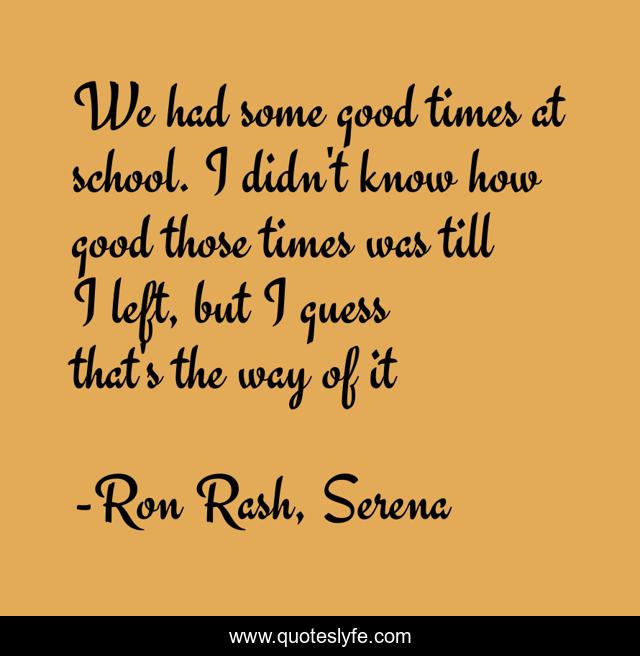 This page presents the quote "We had some good times at school. I didn't know how good those times was till I left, but I guess that's the way of it". Author of this quote is Ron Rash, Serena. This quote is about fun, life, education, schooling, happiness,.