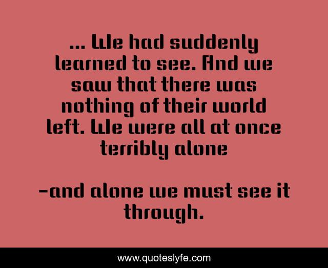 "and alone we must see it through. Quotes." Quoteslyfe.com, 2025. Fri. 05 Dec. 2025. <https://www.quoteslyfe.com/quote/We-had-suddenly-learned-to-see-And-52239>.
