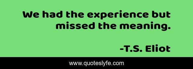 This page presents the quote "We had the experience but missed the meaning.". Author of this quote is T.S. Eliot. This quote is about meaning, experience,.