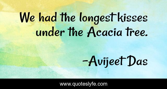 This page presents the quote "We had the longest kisses under the Acacia tree.". Author of this quote is Avijeet Das. This quote is about love, writers-life, valentines, love-poems, muse, acacia-tree, kiss, kissing, affection,.