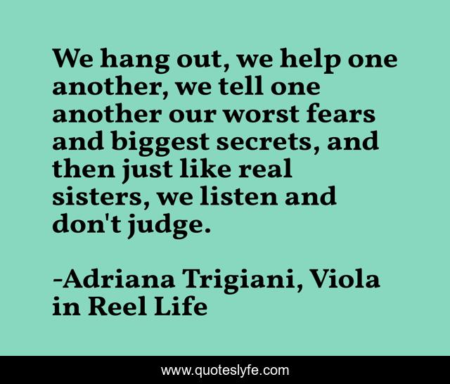 We hang out, we help one another, we tell one another our worst fears and biggest secrets, and then just like real sisters, we listen and don't judge.