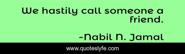 "Nabil N. Jamal Quotes." Quoteslyfe.com, 2025. Tue. 09 Dec. 2025. <https://www.quoteslyfe.com/quote/We-hastily-call-someone-a-friend-229343>.