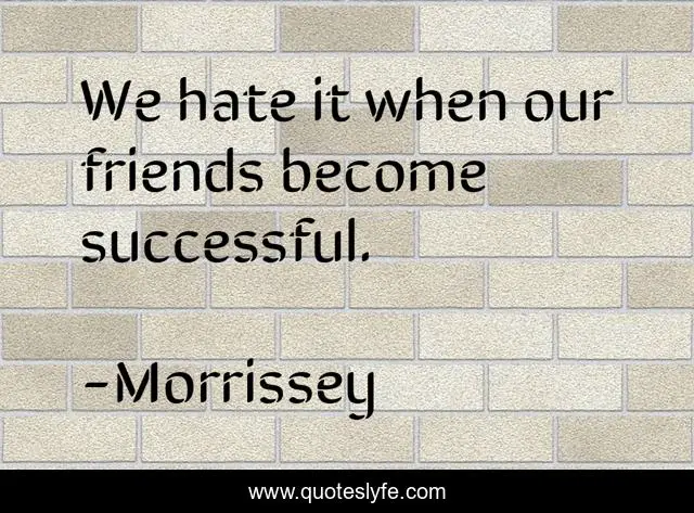 This page presents the quote "We hate it when our friends become successful.". Author of this quote is Morrissey. This quote is about humor, music, lyrics,.