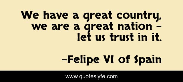"Felipe VI of Spain Quotes." Quoteslyfe.com, 2025. Mon. 08 Dec. 2025. <https://www.quoteslyfe.com/quote/We-have-a-great-country-we-are-315446>.