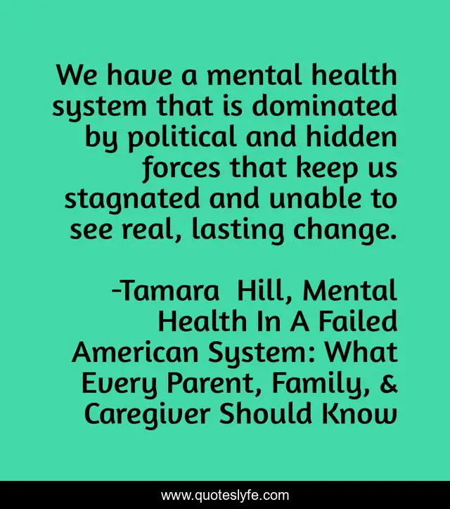 "Tamara Hill, Mental Health In A Failed American System: What Every Parent, Family, & Caregiver Should Know Quotes." Quoteslyfe.com, 2025. Sat. 06 Dec. 2025. <https://www.quoteslyfe.com/quote/We-have-a-mental-health-system-that-211239>.