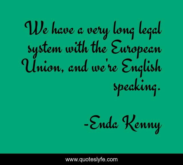 This page presents the quote "We have a very long legal system with the European Union, and we're English speaking.". Author of this quote is Enda Kenny. This quote is about european union, system, long,.