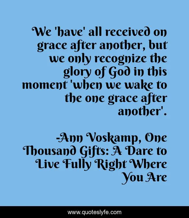 "Ann Voskamp, One Thousand Gifts: A Dare to Live Fully Right Where You Are Quotes." Quoteslyfe.com, 2025. Sat. 06 Dec. 2025. <https://www.quoteslyfe.com/quote/We-have-all-received-on-grace-after-153405>.