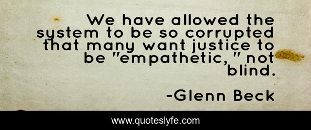 This page presents the quote "We have allowed the system to be so corrupted that many want justice to be "empathetic, " not blind.". Author of this quote is Glenn Beck. This quote is about funny, comedy, political,.