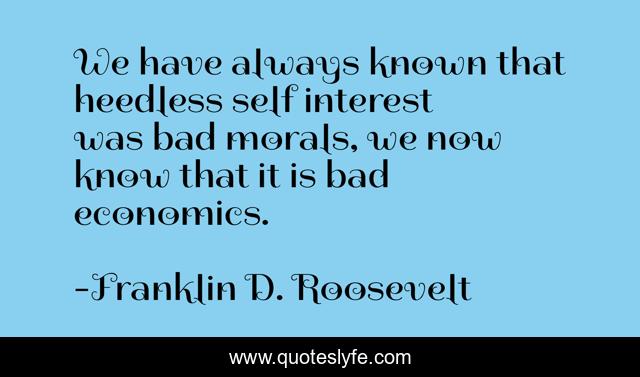 This page presents the quote "We have always known that heedless self interest was bad morals, we now know that it is bad economics.". Author of this quote is Franklin D. Roosevelt. This quote is about economics, greed,.