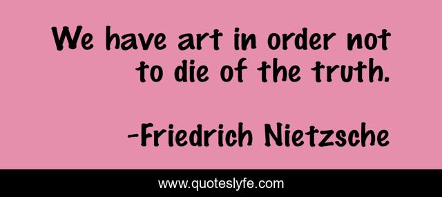 This page presents the quote "We have art in order not to die of the truth.". Author of this quote is Friedrich Nietzsche. .