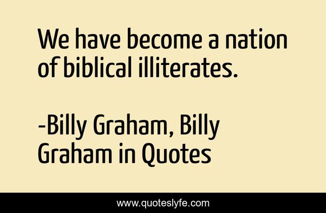 This page presents the quote "We have become a nation of biblical illiterates.". Author of this quote is Billy Graham, Billy Graham in Quotes. This quote is about bible, billy-graham,.