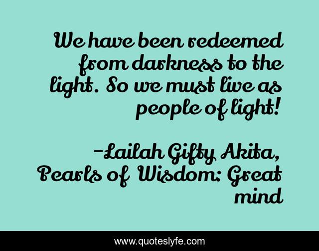 "Lailah Gifty Akita, Pearls of Wisdom: Great mind Quotes." Quoteslyfe.com, 2025. Sun. 07 Dec. 2025. <https://www.quoteslyfe.com/quote/We-have-been-redeemed-from-darkness-to-107308>.