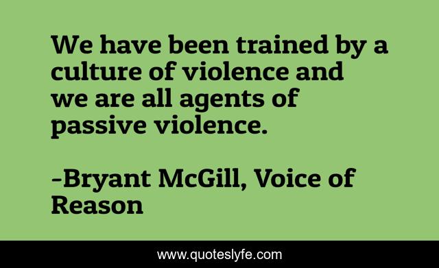 This page presents the quote "We have been trained by a culture of violence and we are all agents of passive violence.". Author of this quote is Bryant McGill, Voice of Reason. This quote is about culture, violence, humanity,.