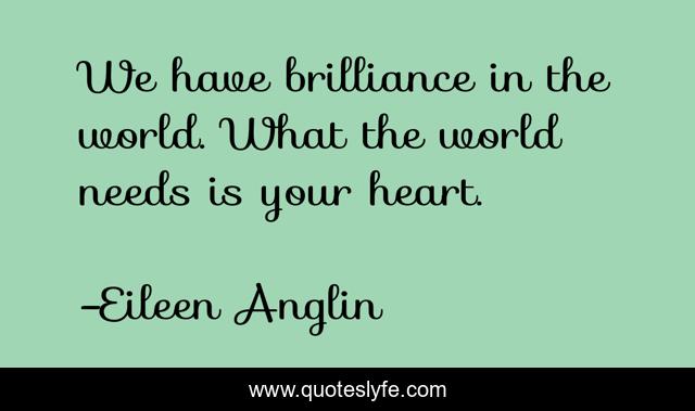 This page presents the quote "We have brilliance in the world. What the world needs is your heart.". Author of this quote is Eileen Anglin. This quote is about heart, spiritual, world-peace, spiritual-wisdom,.