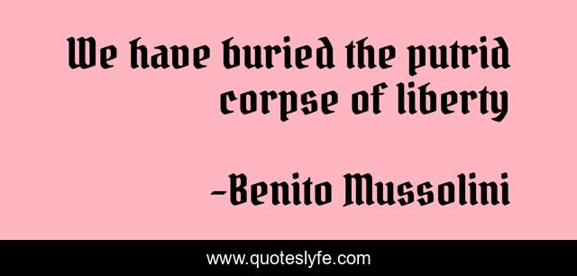 This page presents the quote "We have buried the putrid corpse of liberty". Author of this quote is Benito Mussolini. This quote is about freedom, humour,.