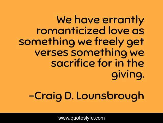 This page presents the quote "We have errantly romanticized love as something we freely get verses something we sacrifice for in the giving.". Author of this quote is Craig D. Lounsbrough. This quote is about sacrificial, love, gift, give, giving, confusion, sacrifice, confused, freely,.