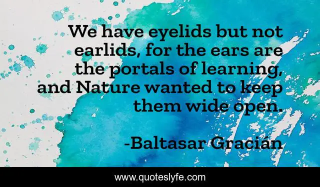 This page presents the quote "We have eyelids but not earlids, for the ears are the portals of learning, and Nature wanted to keep them wide open.". Author of this quote is Baltasar Gracián. This quote is about open-mindedness, open-mind, earlids, learning, wisdom,.
