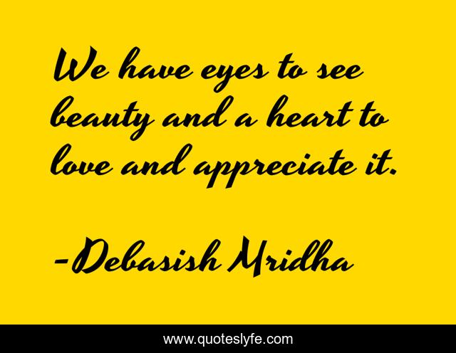 This page presents the quote "We have eyes to see beauty and a heart to love and appreciate it.". Author of this quote is Debasish Mridha. This quote is about love, beauty, philosophy, debasish-mridha, debasish-mridha-m-d, quotes, inspirational, enthusiasm, heart-to-love,.