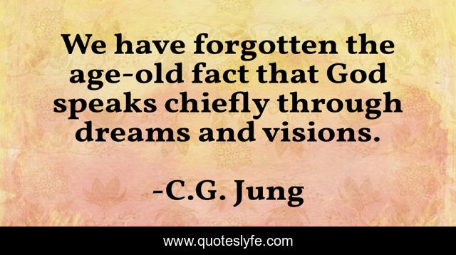 This page presents the quote "We have forgotten the age-old fact that God speaks chiefly through dreams and visions.". Author of this quote is C.G. Jung. This quote is about dreams, god-s-grace,.