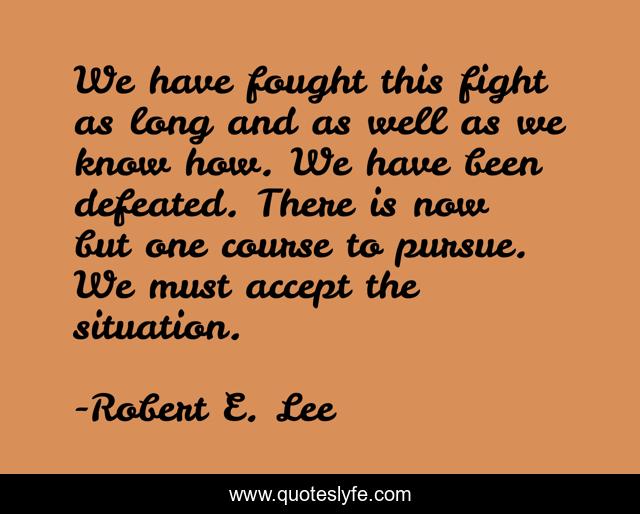 This page presents the quote "We have fought this fight as long and as well as we know how. We have been defeated. There is now but one course to pursue. We must accept the situation.". Author of this quote is Robert E. Lee. .