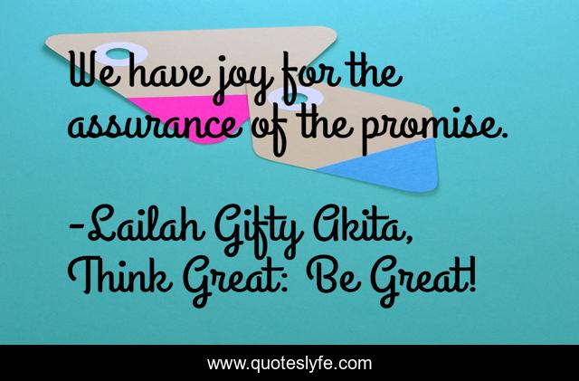 "Lailah Gifty Akita, Think Great: Be Great! Quotes." Quoteslyfe.com, 2025. Fri. 05 Dec. 2025. <https://www.quoteslyfe.com/quote/We-have-joy-for-the-assurance-of-97268>.