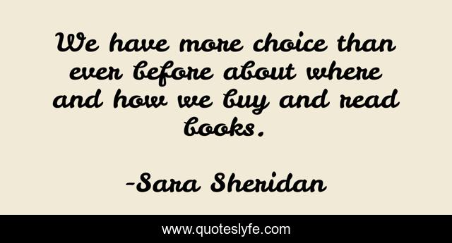 This page presents the quote "We have more choice than ever before about where and how we buy and read books.". Author of this quote is Sara Sheridan. This quote is about publishing, format, choice, books, reading, ebooks,.