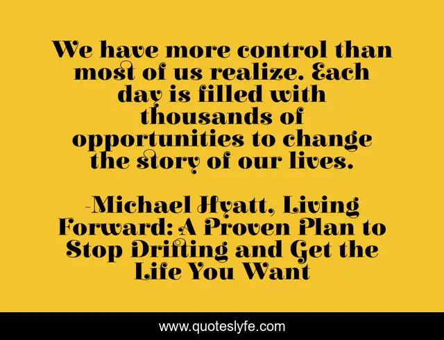 "Michael Hyatt, Living Forward: A Proven Plan to Stop Drifting and Get the Life You Want Quotes." Quoteslyfe.com, 2025. Sat. 06 Dec. 2025. <https://www.quoteslyfe.com/quote/We-have-more-control-than-most-of-140664>.