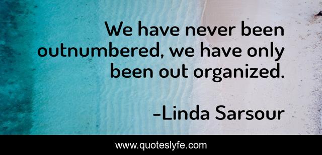 This page presents the quote "We have never been outnumbered, we have only been out organized.". Author of this quote is Linda Sarsour. This quote is about motivation, justice, freedom, political, injustice, inspirational, politics, enthusiasm, feminism,.