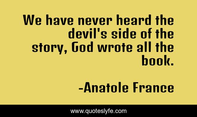 This page presents the quote "We have never heard the devil's side of the story, God wrote all the book.". Author of this quote is Anatole France. This quote is about god, devil, scriptures, bible,.