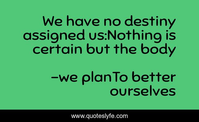 "we planTo better ourselves Quotes." Quoteslyfe.com, 2025. Fri. 05 Dec. 2025. <https://www.quoteslyfe.com/quote/We-have-no-destiny-assigned-us-Nothing-107001>.