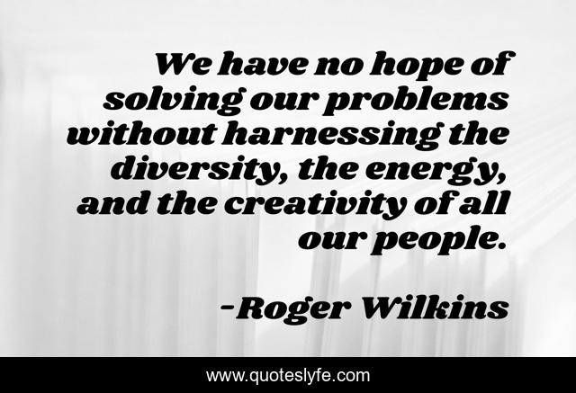 This page presents the quote "We have no hope of solving our problems without harnessing the diversity, the energy, and the creativity of all our people.". Author of this quote is Roger Wilkins. This quote is about creativity, diversity,.