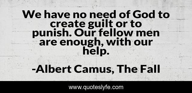 This page presents the quote "We have no need of God to create guilt or to punish. Our fellow men are enough, with our help.". Author of this quote is Albert Camus, The Fall. This quote is about camus, god, guilt, punishment, the-fall,.