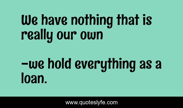 "we hold everything as a loan. Quotes." Quoteslyfe.com, 2025. Fri. 05 Dec. 2025. <https://www.quoteslyfe.com/quote/We-have-nothing-that-is-really-our-125370>.