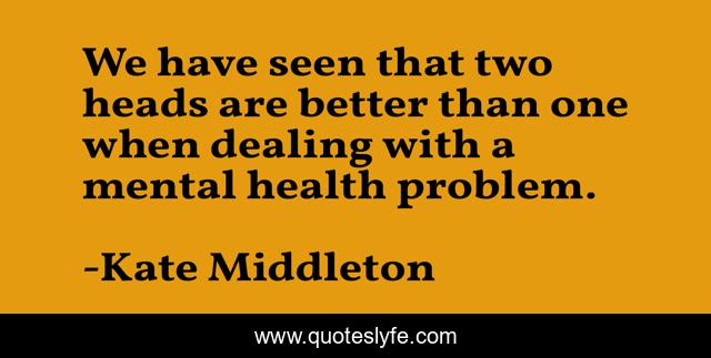 This page presents the quote "We have seen that two heads are better than one when dealing with a mental health problem.". Author of this quote is Kate Middleton. This quote is about problem, mental health,.