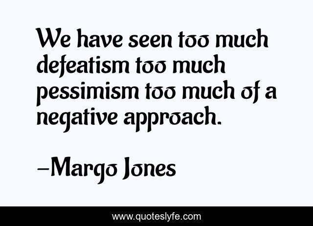 This page presents the quote "We have seen too much defeatism too much pessimism too much of a negative approach.". Author of this quote is Margo Jones. This quote is about positive, confidence,.