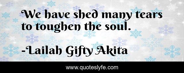 "Lailah Gifty Akita Quotes." Quoteslyfe.com, 2025. Sat. 06 Dec. 2025. <https://www.quoteslyfe.com/quote/We-have-shed-many-tears-to-toughen-63512>.