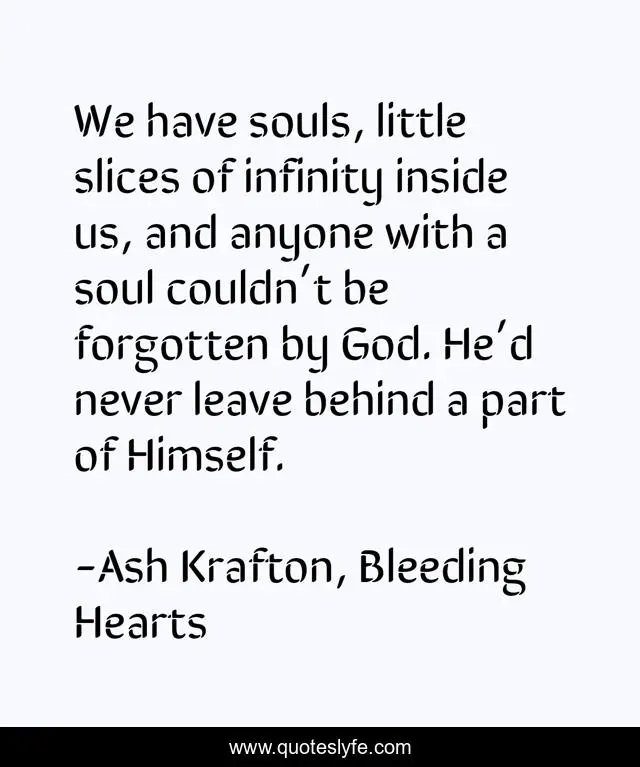 "Ash Krafton, Bleeding Hearts Quotes." Quoteslyfe.com, 2025. Mon. 08 Dec. 2025. <https://www.quoteslyfe.com/quote/We-have-souls-little-slices-of-infinity-202706>.