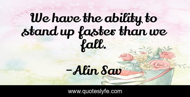This page presents the quote "We have the ability to stand up faster than we fall.". Author of this quote is Alin Sav. This quote is about positive, confidence, motivational, optimistic,.